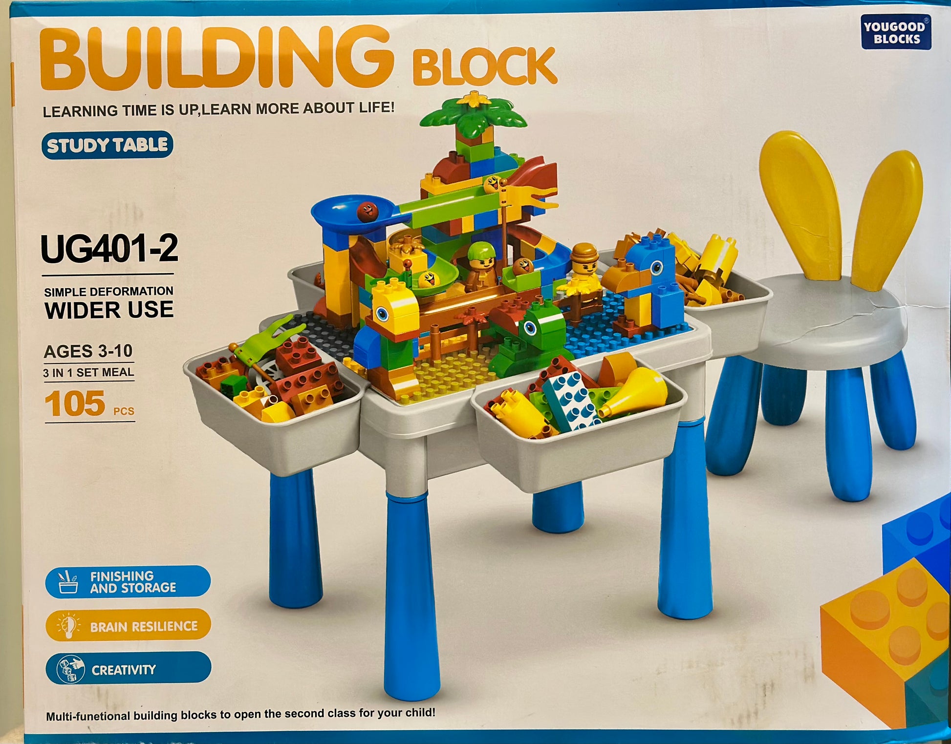 The sturdy tabletop doubles as a building block surface, compatible with most major block brands, and flips over for smooth tabletop activities like writing, coloring, or puzzle play. With the perfectly sized chair included, your child can sit comfortably while exploring new skills and imaginative adventures. 🎉💡