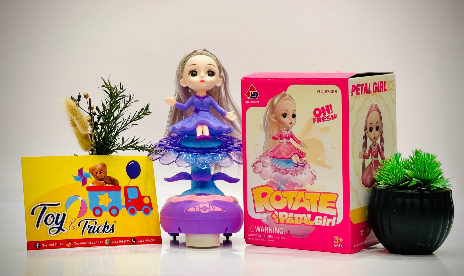 Let your child step into a world of wonder with the Rotate Petal Girl! This charming doll gracefully spins on a vibrant petal base, creating a magical atmosphere with soft, glowing lights and enchanting music. It's more than just a toy – it’s a captivating experience that will keep your little one entertained for hours.